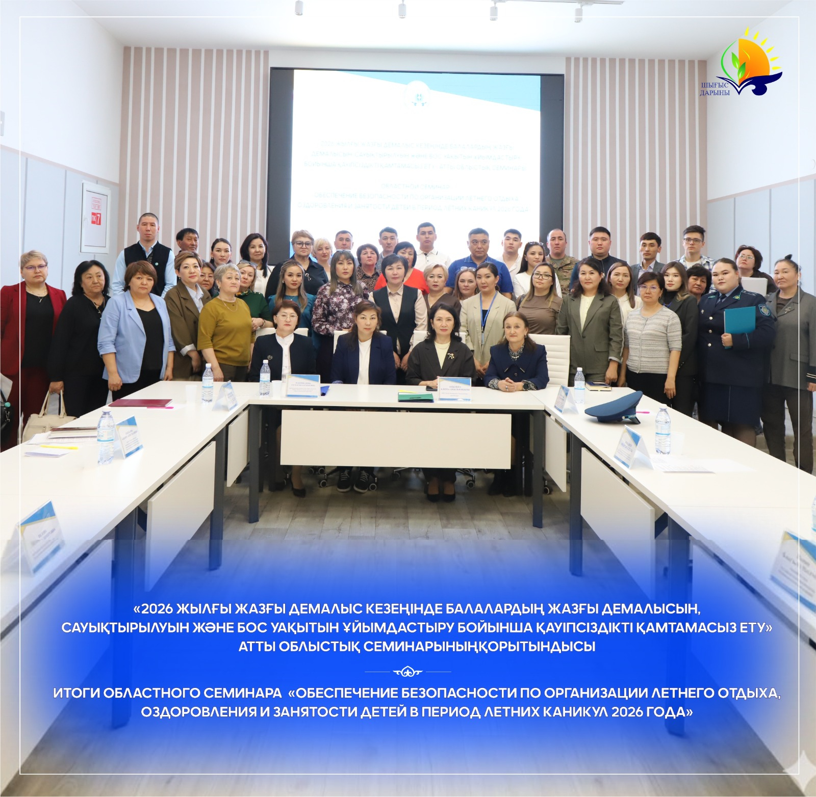 23 апреля 2026 года Восточно-Казахстанским научно-методическим центром развития одаренности и дополнительного образования «Дарын» управления образования Восточно-Казахстанской области проведен областной семинар «Обеспечение безопасности по организации летнего отдыха, оздоровления и занятости детей в период летних каникул 2026 года» с участием заместителя руководителя управления образования Восточно-Казахстанкой области А. Ақылбек, главного специалиста отдела контроля и надзора