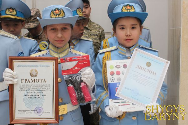 В церемонии награждения приняли участие заместитель командующего регионального командования «Шығыс» Национальной гвардии РК, полковник Н. Алкешов, подполковник полиции ДВД ВКО М. Ким, начальник отдела вневойсковой подготовки, подполковник Департамент по делам обороны ВКО А. Чункунов, подполковник Департамента уголовно-исполнительной системы по ВКО Р. Кожасеитов, главный специалист департамента Агенства РК по делам государственной службы и противодействию коррупции по ВКО Б. Кенчимбаев.