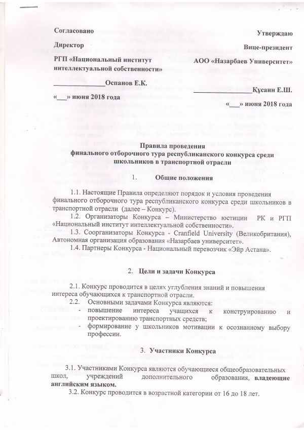 Правила проведения финального отборочного тура республиканского конкурса среди школьников в транспортной отрасли