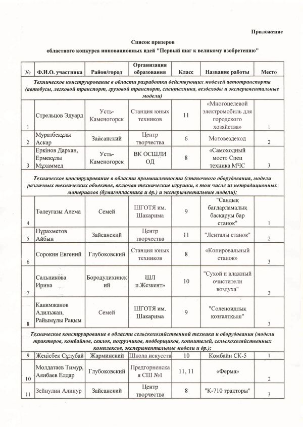 Лучшие работы участников будут направлены для участия в республиканском этапе конкурса инновационных идей «Первый шаг к великому изобретению».