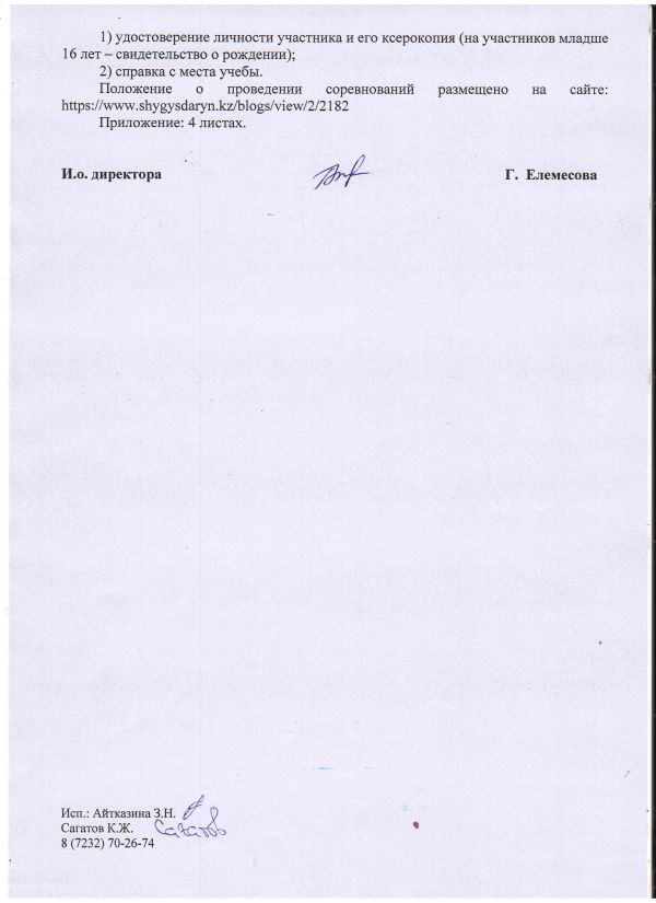 Заявка оформляется строго по форме (Приложение1), за подписью директора медико-социального учреждения (MCУ), специальной школы. Заявки направляются до 16 января 2023 года (отсканированные) на электронный адрес: sporturizm@shygysdaryn.kz.