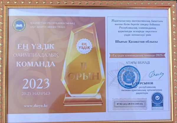По итогам заключительного этапа республиканской олимпиады  команда школьников ВКО завоевала второе командное место в номинации «Лучшая олимпийская команда». В копилке достижений области 17 медалей: 4 - золотых, 4 - серебряных, 9 - бронзовых медалей и 3 грамоты.