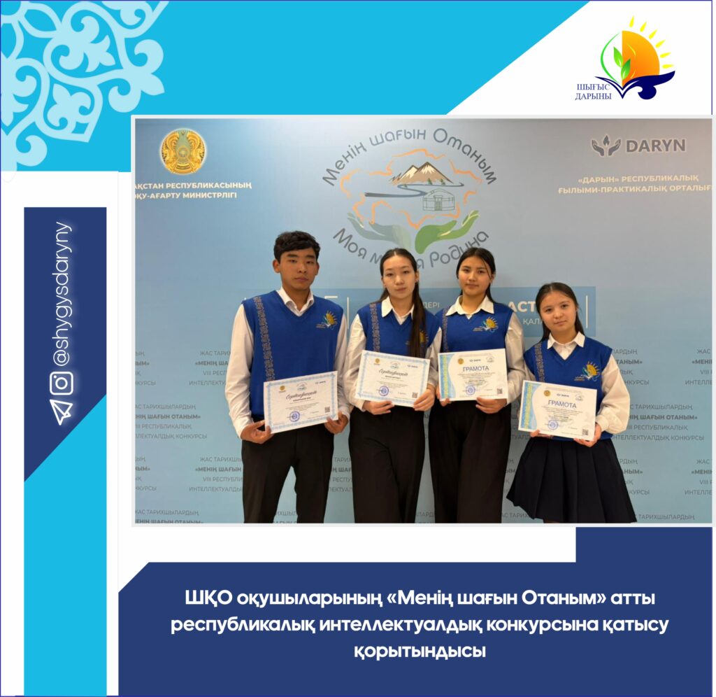 2025 жылдың 29 мен 31 қазанында Шығыс Қазақстан облысының оқушылар командасы Астана қаласында өткен «Менің шағын Отаным» жас тарихшылардың республикалық интеллектуалдық конкурсына қатысты.